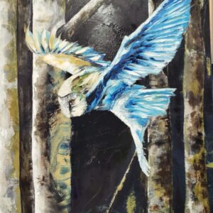 Maggie Martin is a talented 65-year-old artist based in Idaho. She began her painting journey in 2021, a decision driven by profound personal loss. After the tragic deaths of her daughter and husband, she found solace and healing in art, using it as a way to navigate through her grief. Maggie’s artwork primarily focuses on themes of Native American culture and wildlife, reflecting her deep appreciation for native traditions and beliefs. In addition to painting, she also engages in sculpting and clay casting in porcelain, creating one-of-a-kind Native American war masks. Each mask is painted with respect to native traditions, resulting in unique and historically significant pieces. Through her diverse artistic expressions, she conveys not only her artistic vision but also her respect for the spiritual and cultural heritage of the Native American community. Her work resonates with a sense of connection to the natural world, embodying both beauty and reverence for the landscapes and stories she portrays.